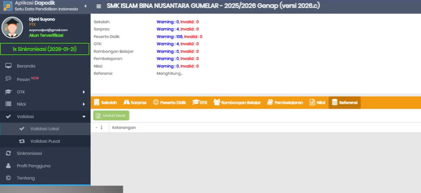 Setelah validasi selesai, buka menu Sinkronisasi.